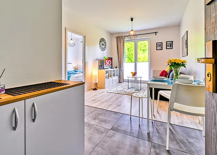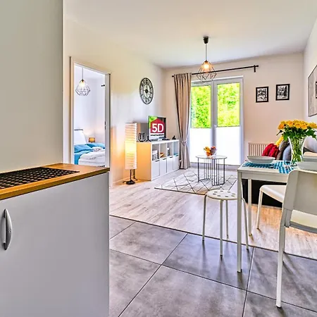 El apartamento cuenta con un balcón, una cocina completa y una cocina, y comodidades como climatizador. Este establecimiento acoge a los huéspedes en 1 dormitorio. El Apartament Pod Brzozami - 5D Apartments también ofrece 1 cuarto de baño.